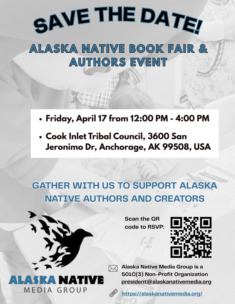 Save the date for the 7th Annual Alaska Native Book Fair & Authors Event! ather with us to support Alaska Native authors and creators. We look forward to seeing you on April 17 at the Cook Inlet Tribal Council located at 3600 San Jeronimo Dr., Anchorage!